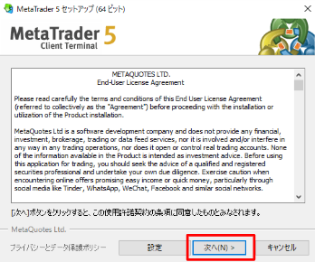 MT5の公式サイトからインストーラーをダウンロードし、ファイルを実行します。