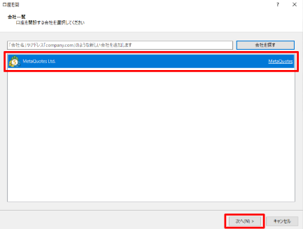 2.会社一覧からデモ口座を開設したい会社を選んで「次へ」