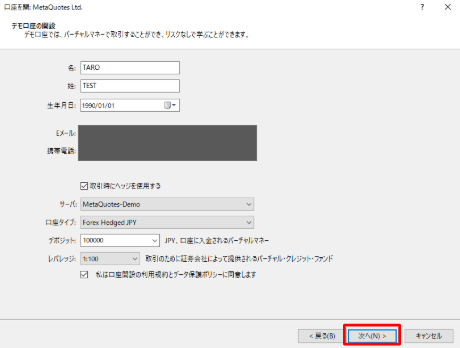 EAの開発や検証には、デモ口座の利用が一般的 です。リアル口座でも可能ですが、今回は学習が目的なのでデモ口座を使用します。