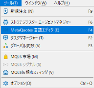 MT5メニューから「ツール」 → 「MetaQuotes 言語エディタ」をクリックします。
